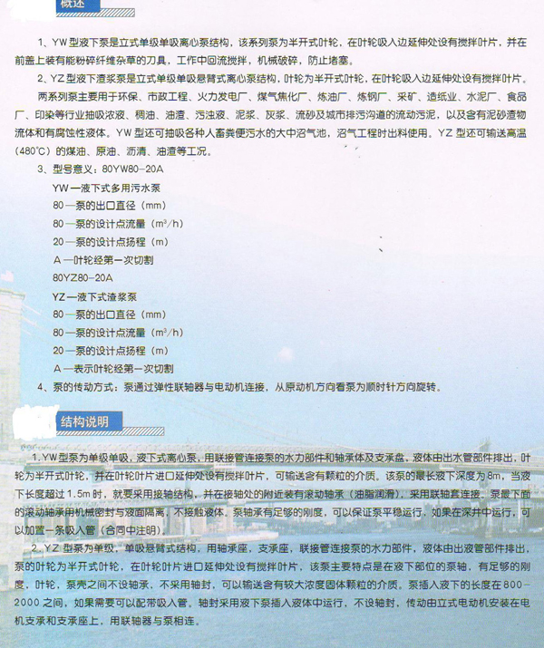 產(chǎn)品名稱:YW液下泵